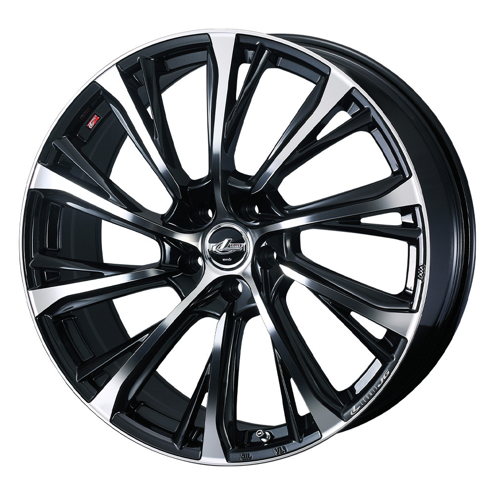 レオニスJGは、10本スポークベースでスポークの長さとデザインを強調するため、緩やかな捻りを施したデザインを採用。ミニバン、SUV装着しても存在感のあるデザインホイールとなっています。スポークエンドに向かって裾広がりスポーク+サブスポークを追加する事により重厚感のあるデザインとしました。また、5本のスポークをセンター部までミラーカットすると共に捻りに加える事によりスポークの長さを演出し大口径に見える視覚効果を強調しました。