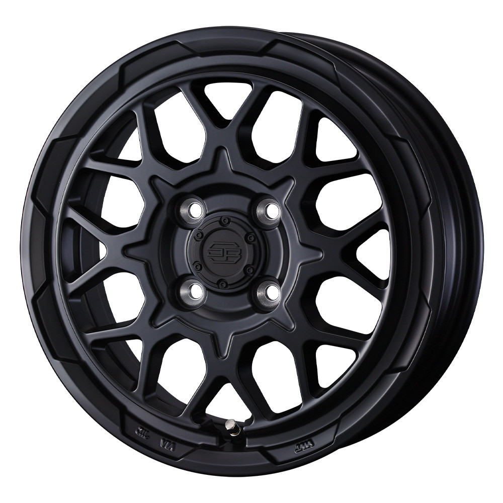 スタットベルグの2作目として、SUV系の剛性感の強いデザインベースは継承しつつ粗目のMESHデザインとしました。シンプルなデザインで有りながら、リム外周部に凹形状を施しSUV系独特な立体感を演出。センターデザインは8交点MESHデザインとし、CAP周辺部にV字形状を採用しセンター部の躍動感を加えたデザインテイストになってます。